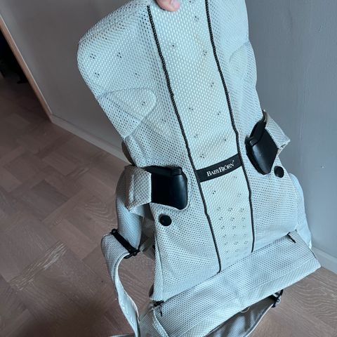 Bæresele til baby fra 3,5 kilo til 15 kg. Kan brukes med baby innover, utover og på ryggen. Selen er denimfarget og det ytterste stoffet er en blanding av bomull og polyester, men foret er i 100% bomull. Den er nyvasket og klar til bruk. Bruksanvisning/manual følger med.