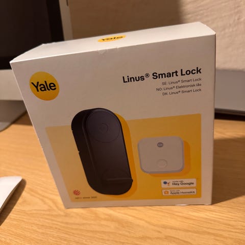 Yale Linus Smart Lock L2 elektronisk dørlås med mulighet for smartstyring via app. Produktet er designet for enkel montering på eksisterende låser og gir økt kontroll over adgang til hjemmet. Passer til standard dører og kan integreres med smarthussystemer.