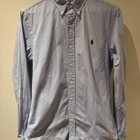 Ralph Lauren Slim Fit skjorte i størrelse S, blå farge, laget av bomull. Skjorten har et stripet mønster og er designet for menn.