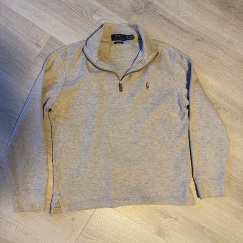 Ralph Lauren Polo genser i blå farge, størrelse XS, laget av bomull. Genseren er designet for menn og har en halv glidelås i front.