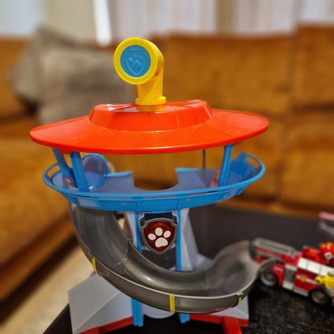 Paw Patrol lekeset som inkluderer et lekent tårn ( veldig stor)med lysdetaljer, flere små kjøretøy og figurer.