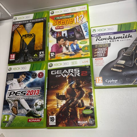 X-Box 360 spill. Alle er pent behandlet. Rene og blanke plater. 2 plater har noen korte tynne overflate striper. Mulig fra inn/ut av konsoll. Påvirker ikke avspilling. Selges samlet.