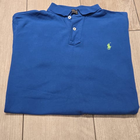 Ralph Lauren Polo T-skjorte i blå farge, størrelse L, laget av bomull. T-skjorten har klassisk polokrage og kort erm. Dm om spørsmål.
