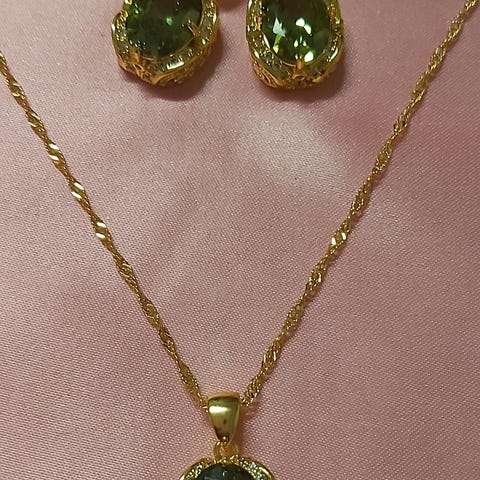 Halskjede og armbånd i 14k gullbelegg, med fargerike zirconia krystaller.