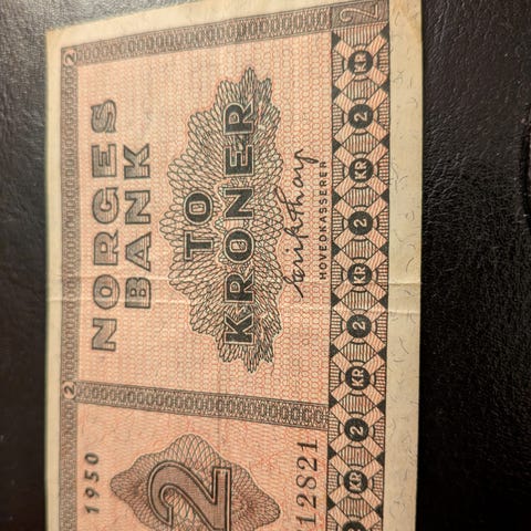 Godt brukt 1 krone sedel fra 1950