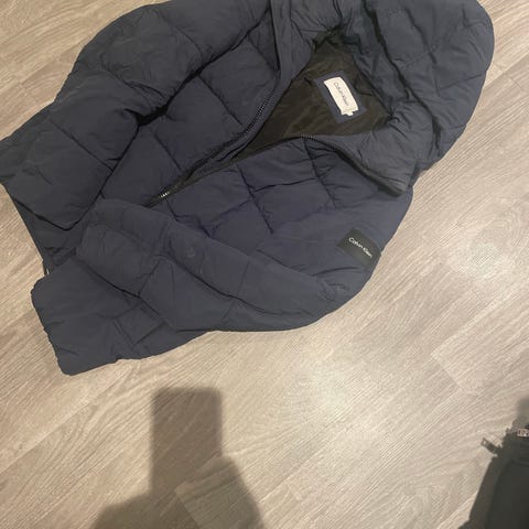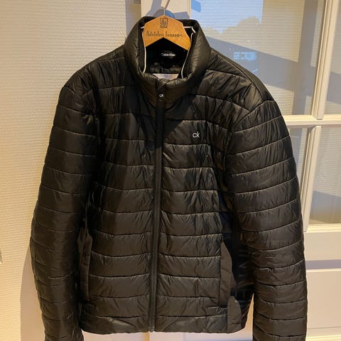 Calvin Klein Jakke i svart farge, størrelse S. Jakken er laget av dun, som gir isolasjon og varme. Passer for menn.