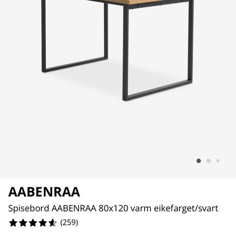 Pent brukt som spisebord, men fungerer også som skrivebord/arbeidsbord. Helt fin i platetoppen. Fra IKEA