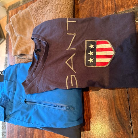 Str S på buksa, men veldig liten. 12-14 år. Votter passer en liten S. Selges samlet
