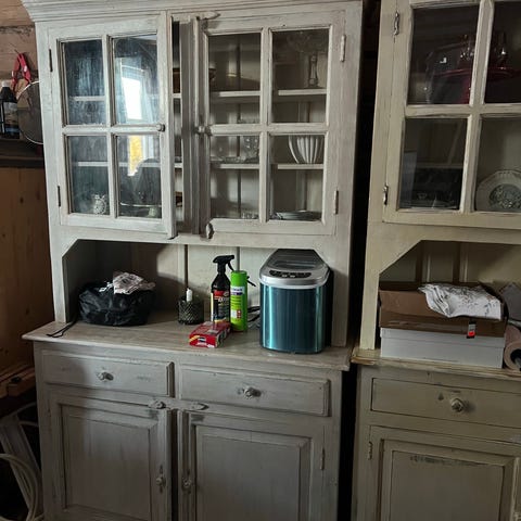 Skapet er malt i en nøytral grå farge.