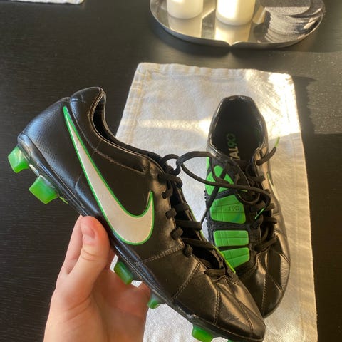 Helt ubrukte NIKE TOTAL90 LASER IV ACC KL FG BRIGHT CRIMSON/DARK OBSIDIAN/ELECTRIC GREEN i størrelse 44 eu/10 us