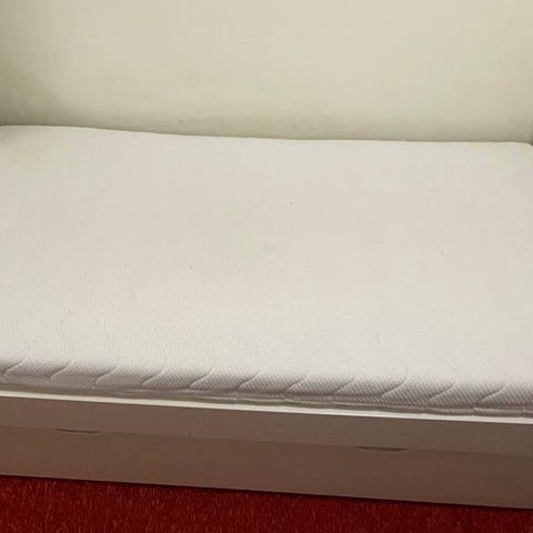 Svane seng med overmadrass fra Ikea. Kun stått på