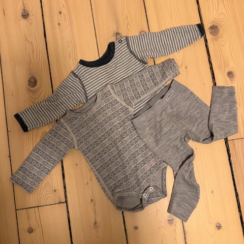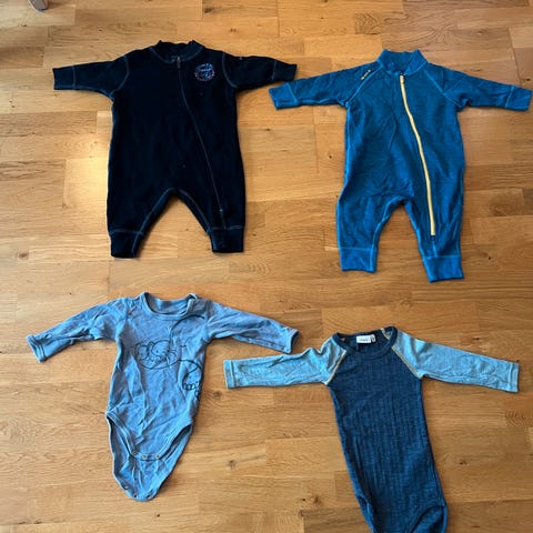 Barneklær i ull, størrelse 68. Flere ulike merker. Meste pent brukt, og noe godt brukt da sønnen har brukt denne str lenge.