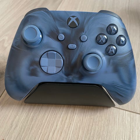 Selger en trådløs 2.4G gamepad som fungerer veldig bra til både Xbox og PC. Stabil tilkobling, lav forsinkelse og god følelse i hendene. Litt annerledes og kul i blå farge.