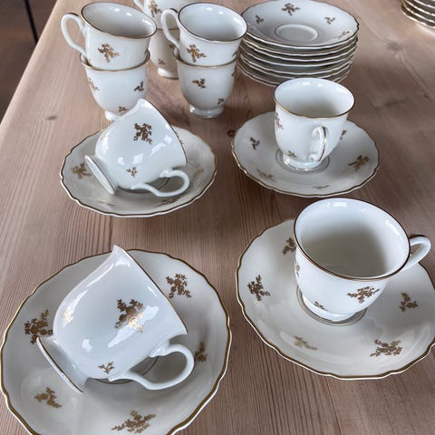Prisen er for 6 kopper med skål! Jeg pakker godt og sender gjerne. Jeg har totalt 12 kopper med skål og mer av dette serviset (se mine annonser eller send meg melding) :)