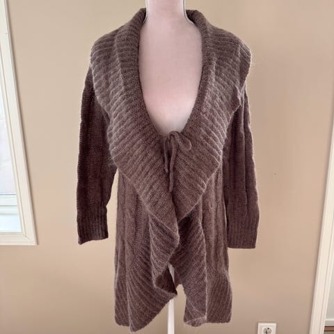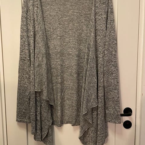 Lang cardigan i str M, men romslig størrelse. Lukkes med knapp.