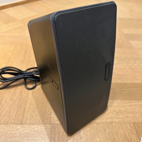 Sonos Play:5 gen 2 høyttaler i svart farge. Høyttaleren er designet for å levere høy lydkvalitet og kan brukes i ulike rom for musikkavspilling. Nettverkskortet har sluttet å funke, så den må brukes med nettverkskabel. Ellers i god stand og god lyd!