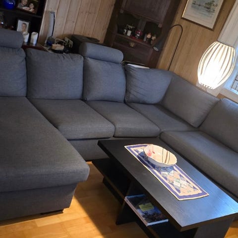 Flott U sofa med puff Selges. Det følger med ekstra putetrekk som ikke er brukt.