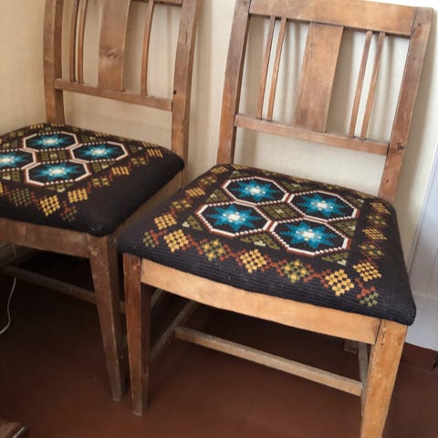 To nydelige blekrosa velourstoler med løveføtter selges samlet for kr 1.700,- eller 1.000,- pr stk.