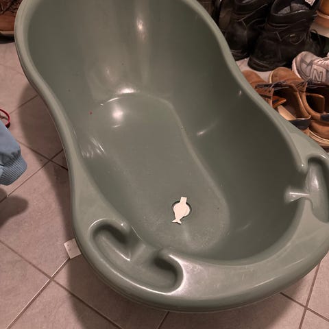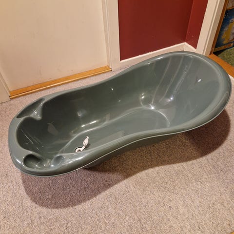 Pent brukt badebalje med nyfødtstøtte selges fordi vi ikke trenger den lengre.