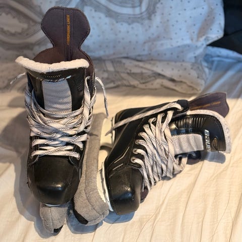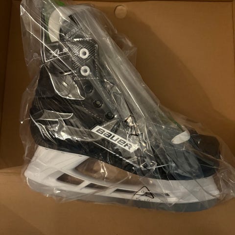 Bauer ishockeyskøyter i størrelse 43 med svart og grønn farge. Skøytene er designet for ishockey og har standard egenskaper for denne sporten.