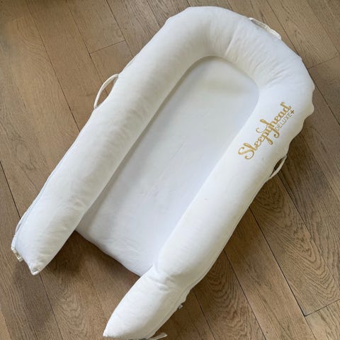 NY, ubrukt baby nest Sleepyhead Deluxe Plus Pod som fungerer som en trygg soveplass og støtte for babyer. Passer for nyfødte og opp til 8 måneder. Laget med myke materialer som gir komfort og støtte. Kan brukes til søvn, lek og som støtte under amming.