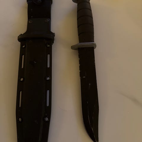 KA-BAR kniv med svart blad og svart håndtak. Leveres med svart slire for oppbevaring og bæring. Kan gjerne bytte ut mot ka bar 1217