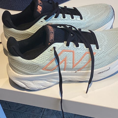 Pent brukte slippers fra Hoka selges. Det står str 9, som betyr 40, men jeg syns de er litt små (kjenner kanten på hælen når jeg går med de), og jeg er str 40.