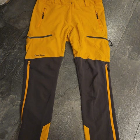Rab Fottur bukse for herre i størrelse M. Buksen er oransje med grå detaljer og har funksjoner tilpasset fottur. Materialet og designet er egnet for utendørs bruk.