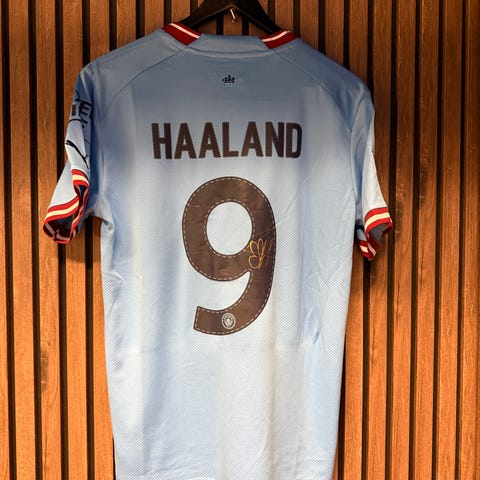 Ultra‑sjeldent Erling Haaland‑samleobjekt – signert drakt + memorobilia auto kort nummerert til /5