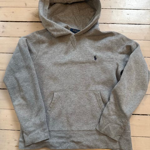 Ralph Lauren Polo hettegenser i størrelse 8 for gutt. Pent brukt uten synlige bruksmerker. Den har hette og frontlogo med tekst.