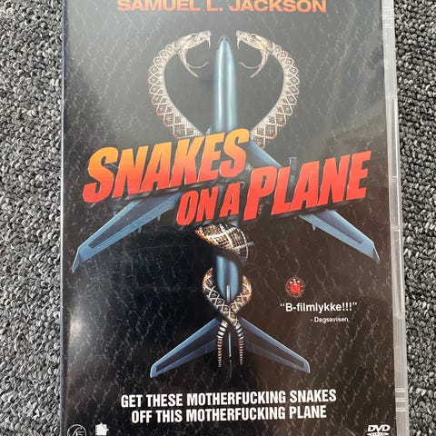 Snakes on a Plane DVD film med Samuel L. Jackson. Inneholder filmen Snakes on a Plane, en thriller med handling sentrert rundt en flyreise med farlige slanger ombord. Norsk tekst.