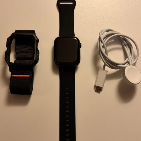 Apple Watch Series 8 GPS. Klokken er i god stand, litt bruksmerker og små riper som man kan se på bilder.