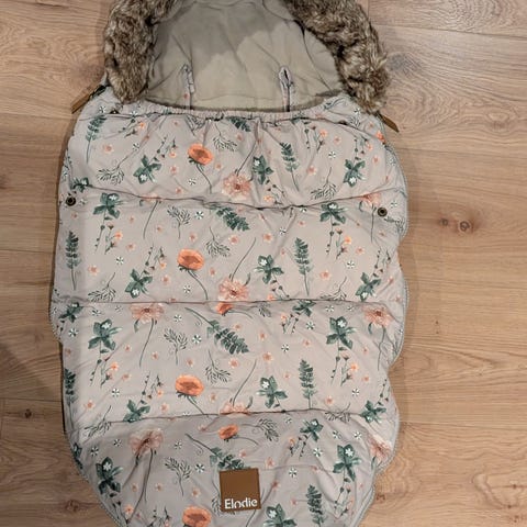 Tyll og god med dun inni, grå strikk utenpå og nydelig myk rosa babycord inni.