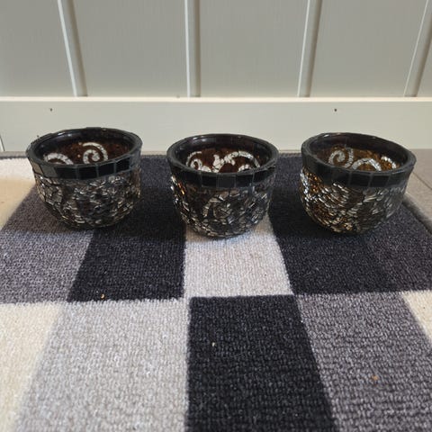 Store lysestaker, en av de mangler en spiss. Ellers i bra stand. Selges billig.