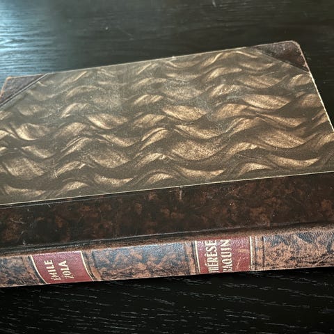 Emile Zola: Therese Raquin. Utgitt 1989, med illustrasjoner av Castelli. En god roman, anbefales. Boken er innbundet og som ny, lesesnoren ligger fortsatt på plass. Kan sende.