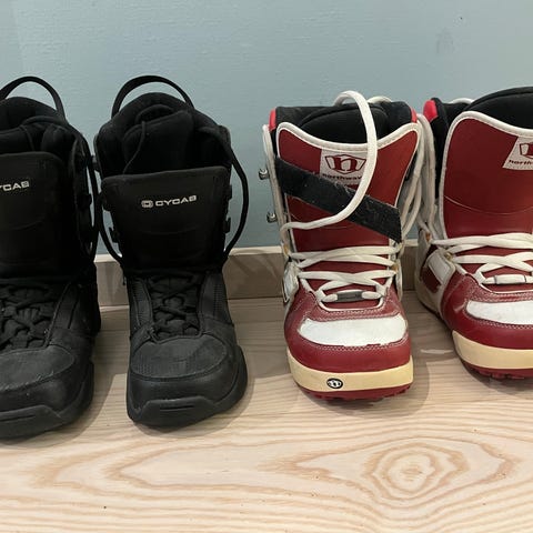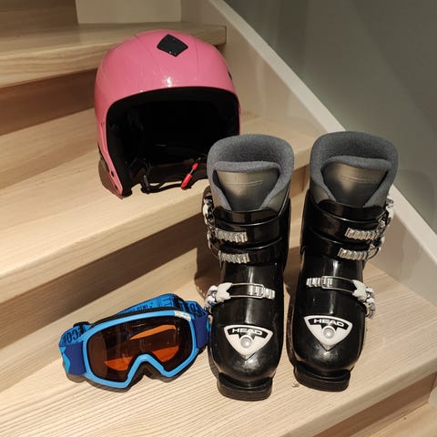 Selger unna alpinstøvler, snowboard og snowboardsko som har blitt for smått til barna.