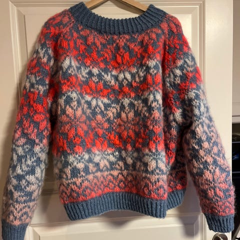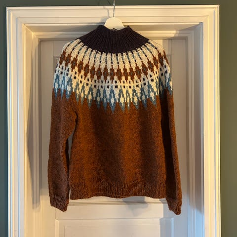 Mye stretch i denne. Ermene er ment å gå litt nedpå hånda.