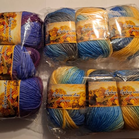 Heklet lysblå/brun lue i Viking Garn Mohrino – en myk blanding av mohair og merinoull.