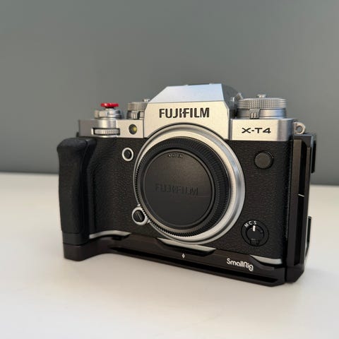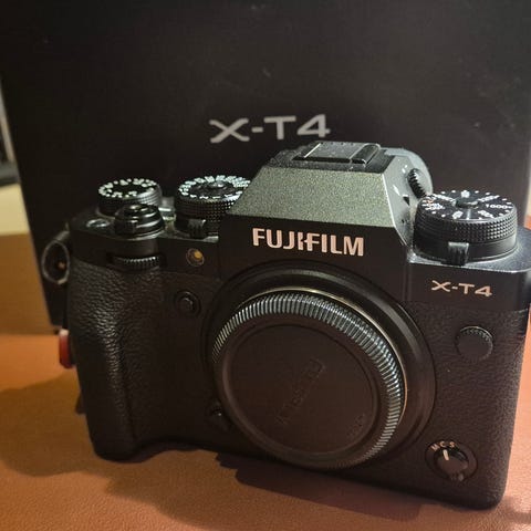 Fujifilm X-T4 med avanserte funksjoner for fotografering. Kameraet har et robust design og er egnet for både foto- og videoopptak.