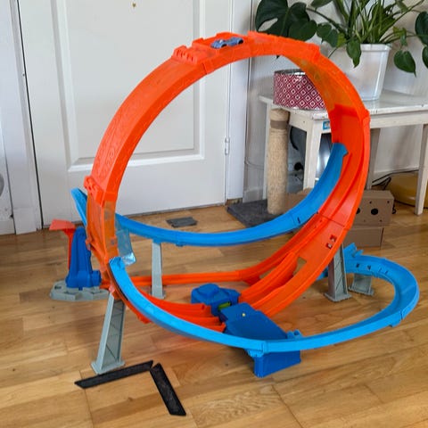 Hot Wheels lekebane med sløyfe og fargerike spor. Passer for barn som liker bilbaner og lek med små biler.