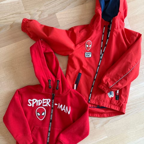 H&M Spiderman barneklær for gutt i størrelse 104. Laget av bomull. Fargene er svart og rød. Passer til daglig bruk for barn.