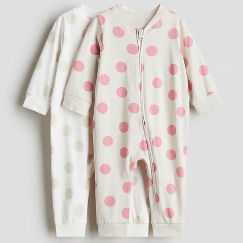 Pent brukt GAP pysjamas med rysjer på skuldrene. Den er mørkeblå med prikker i flere farger. Den er laget av 100% bomull. Designet for aldersgruppen 18-24 måneder.