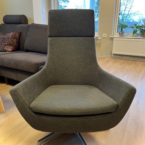 Selger en elegant loungestol fra Woood, modell Masse.