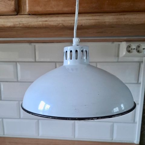 Lampen er i god stand, nesten ubrukt. Usikker på merke, men den har den populære mid-century modern / industriell stilen som passer inn i de fleste hjem.