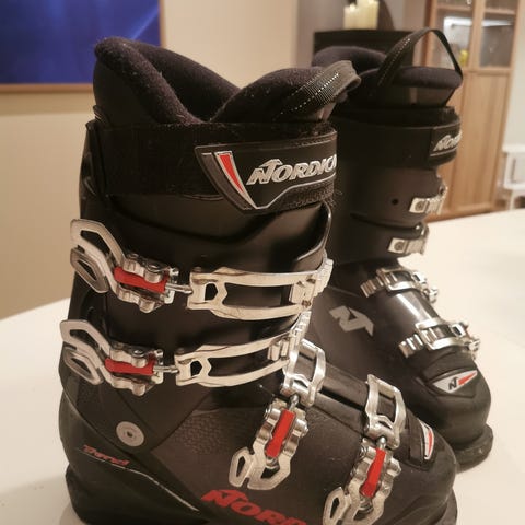 Støvelen har fire spenner for justering og en solid såle. Egnet for alpinski.
