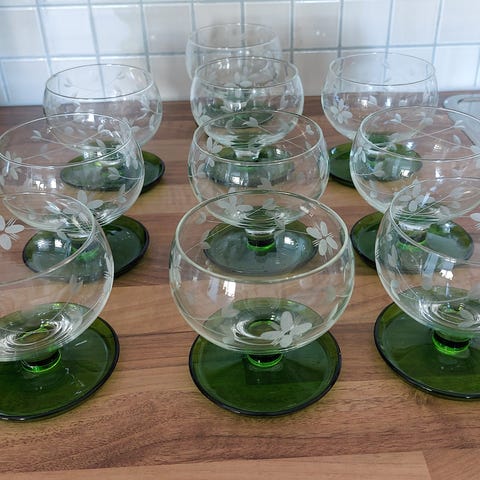 Pent brukte dessert glass/stettglass med opphøyet fotplate og gullkant i fra Magnor eller Randsfjord glassverk? Høyde 8,5 cm og Diameter 9 cm. Selger samlet. Kan hentes i Moss ellers så sender jeg med sporing og forsikring. Sender på kjøpers regning og ansvar. Fiks ferdig eller privat med vipps. Frakt posten med sporing kr 135.
