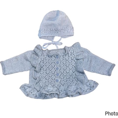 Hjemmestrikket dress og kyse. Babystrikk.