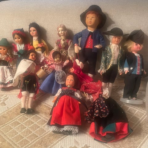 7 stykker. Den lille er 5,5 cm. De største er 14 cm. Selges samlet for 100,- kr.