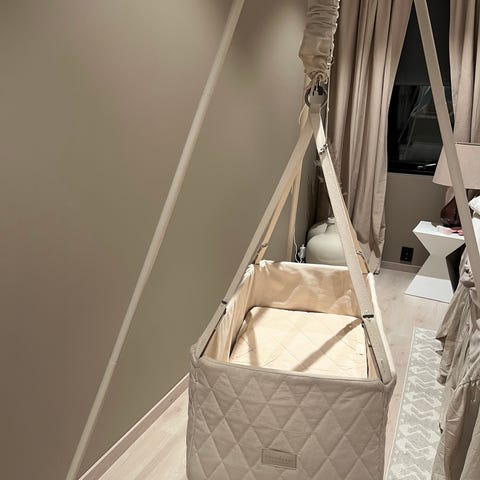 Den er pent brukt da vår unge ikke var så begeistret for denne, ble brukt babynest også, så babyen har ikke ligget direkte i sengen. Den er uten bruksmerker.