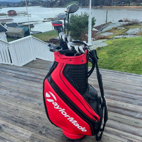 golfkøller, puttere, limited edition golfballer, brukte golfbagger og Cabrea skinnhansker med egen logo.